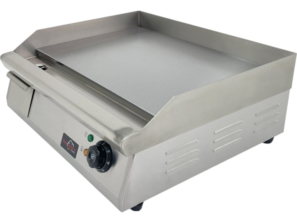 Hledáte spolehlivý a výkonný gril pro profesionální kuchyň? Elektrický gril s hladkou grilovací deskou o šířce 55 cm je ideální volbou pro gastro provozy, kde se klade důraz na rychlost, přesnost a hygienu. Díky plynulé regulaci teploty v rozsahu 50 až 300 °C poskytuje maximální kontrolu nad přípravou pokrmů – od jemného opečení po intenzivní grilování.