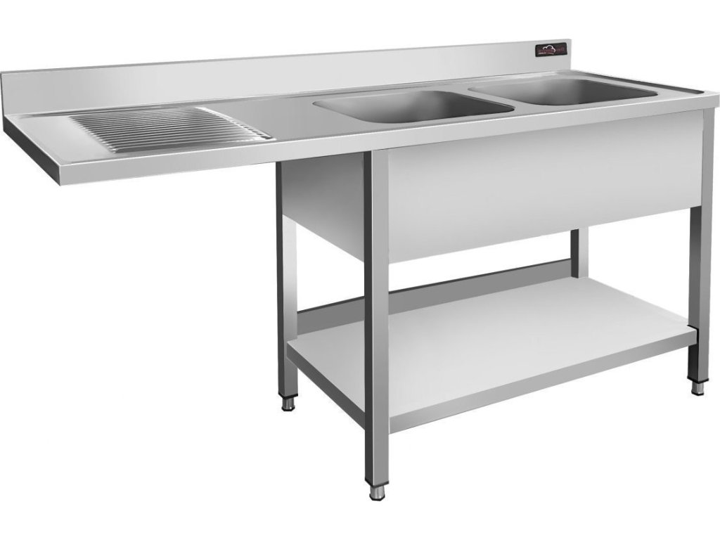 Nerezový dřez k myčce nádobí - 1,6 m, 2 umyvadla vpravo, hloubka 60 cm