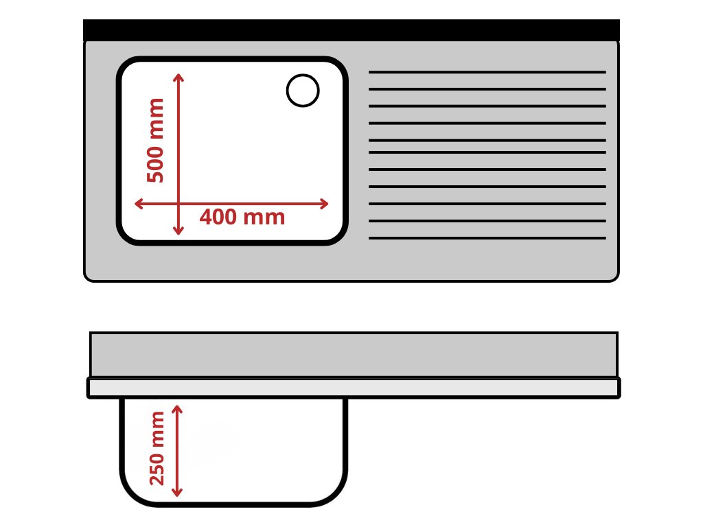 Rozměry dřezem: 400×500×250 mm