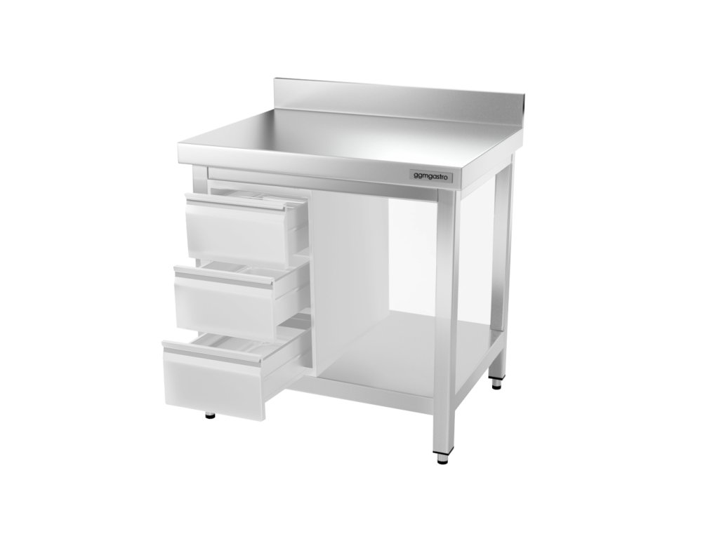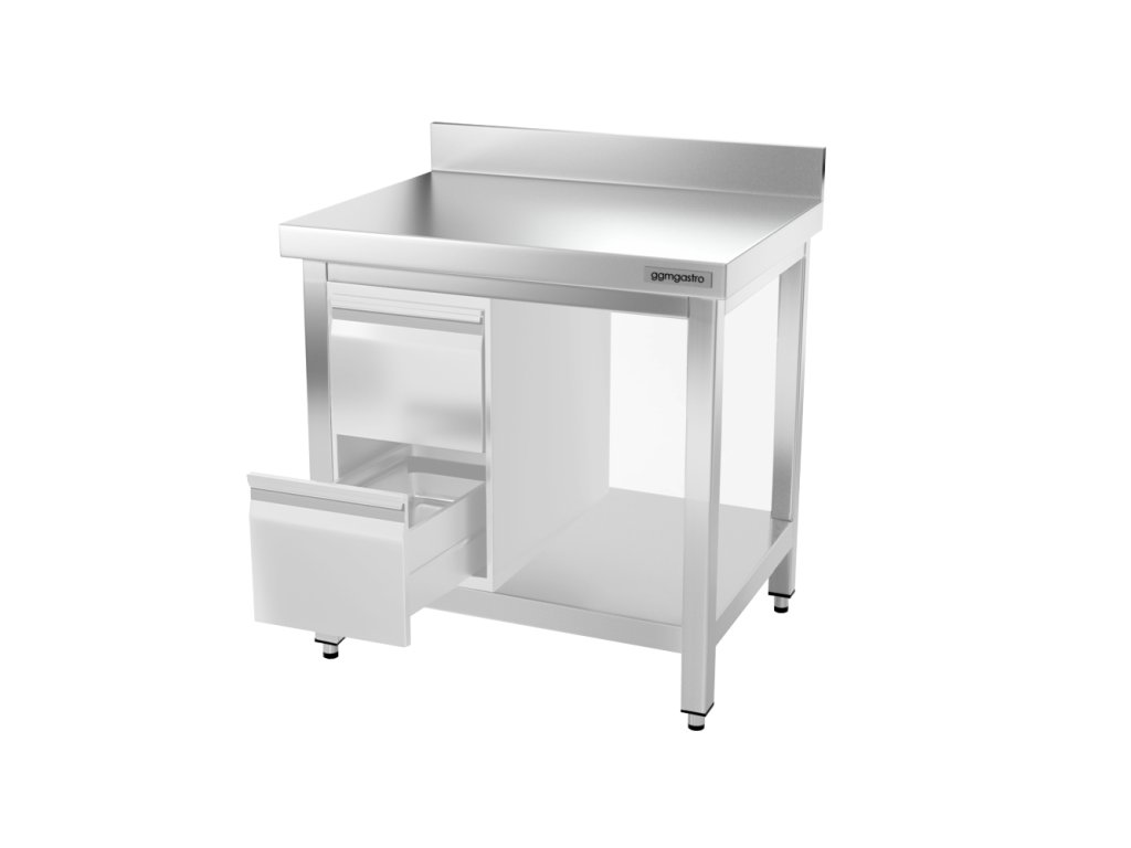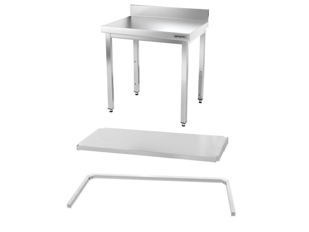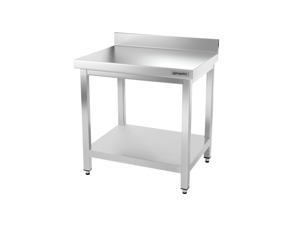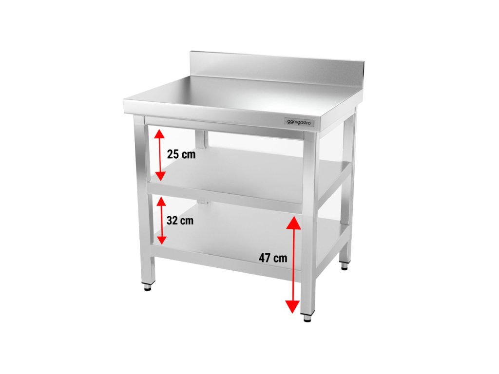 Pracovní stůl PREMIUM z nerezové oceli - 0,7 m - se spodní policí, obkladovým panelem & výztuhou