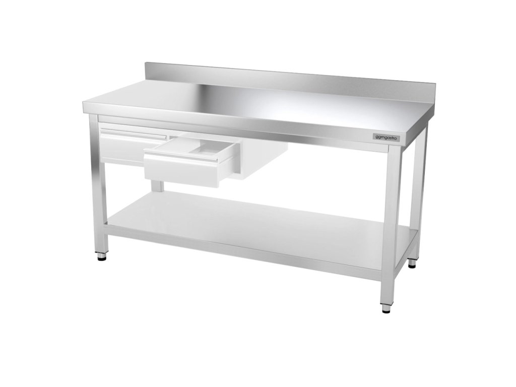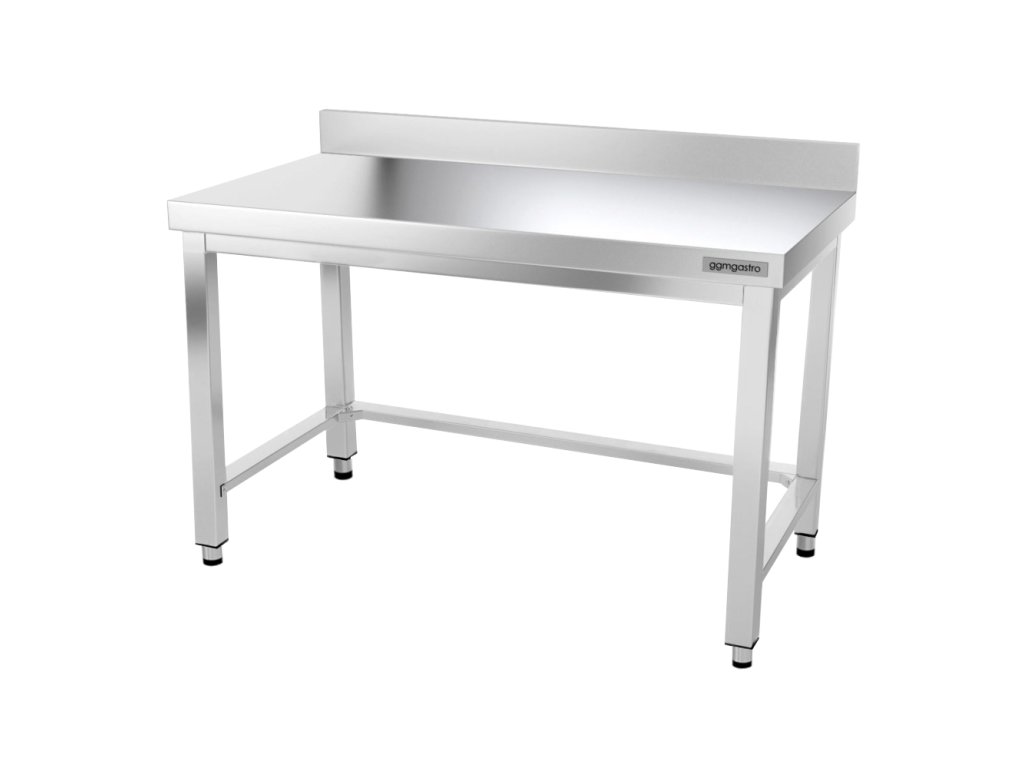 Nerezový Pracovní stůl PREMIUM - 1,5 m - se spodní policí, obkladovým panelem & výztuhou