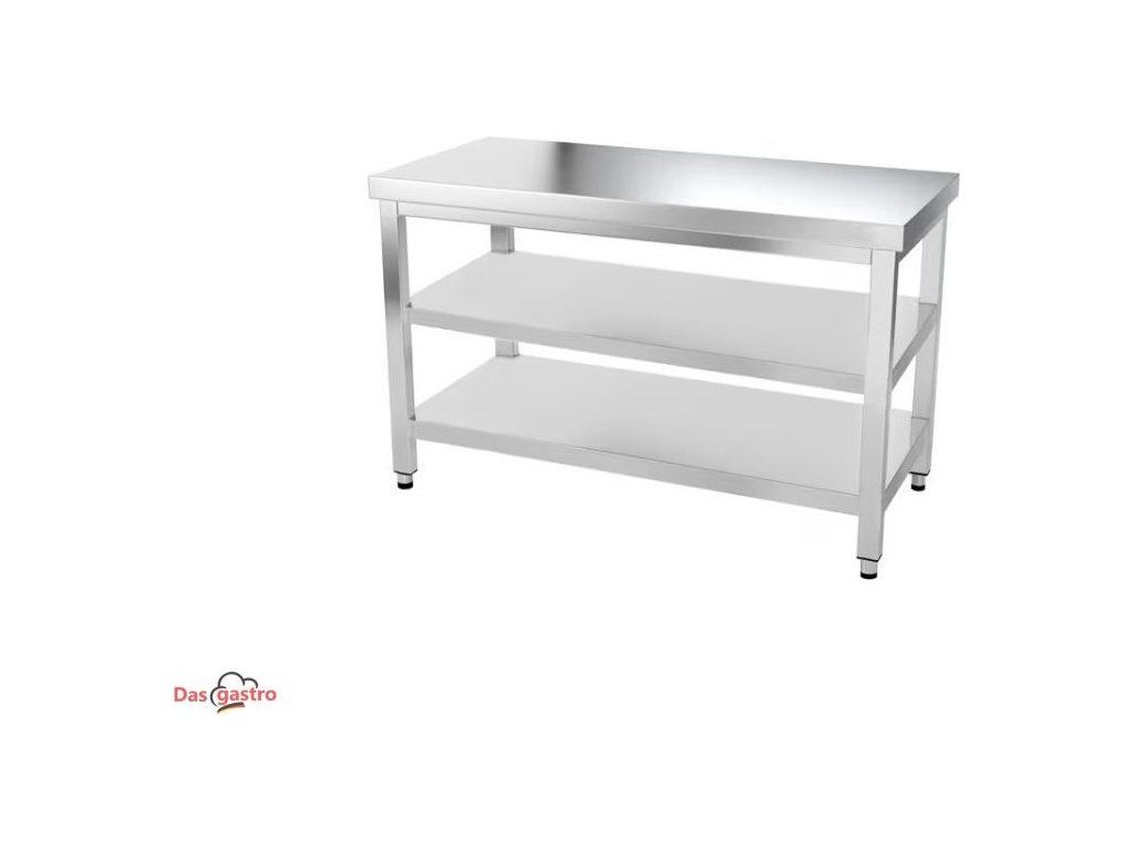 Nerezový pracovní stůl pro profesionální provozy. Stabilní konstrukce, snadná údržba a praktická spodní police z něj dělají ideální volbu do gastro kuchyní, přípraven i zázemí.