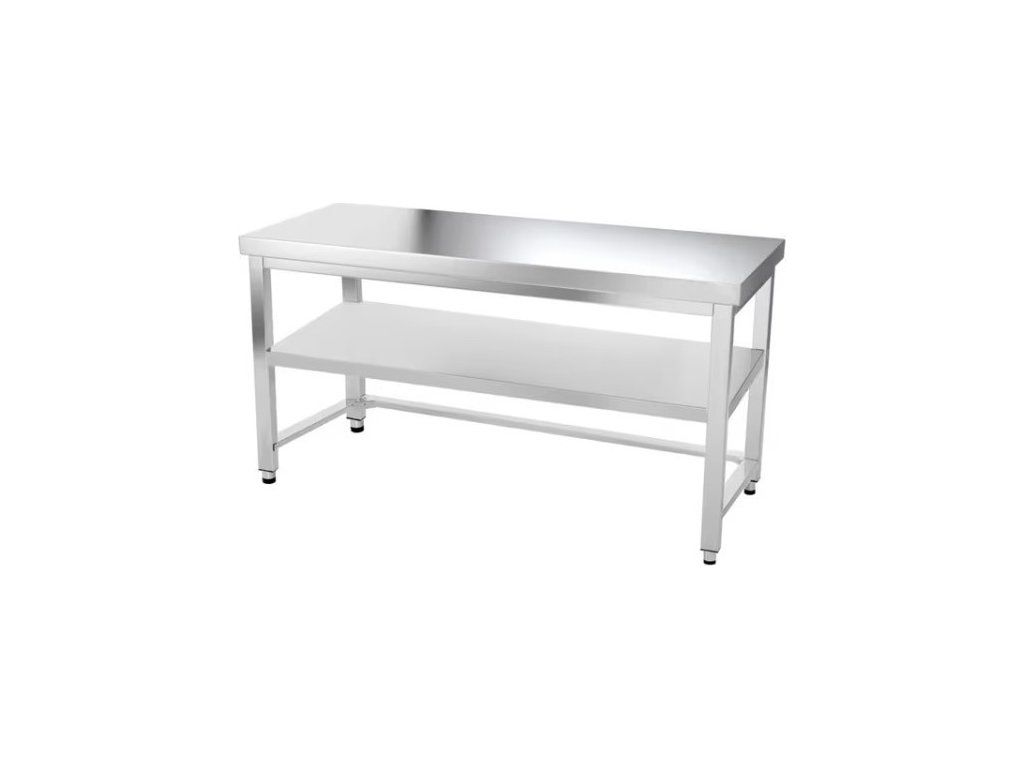 Nerezový pracovní stůl pro profesionální provozy. Stabilní konstrukce, snadná údržba a praktická spodní police z něj dělají ideální volbu do gastro kuchyní, přípraven i zázemí.