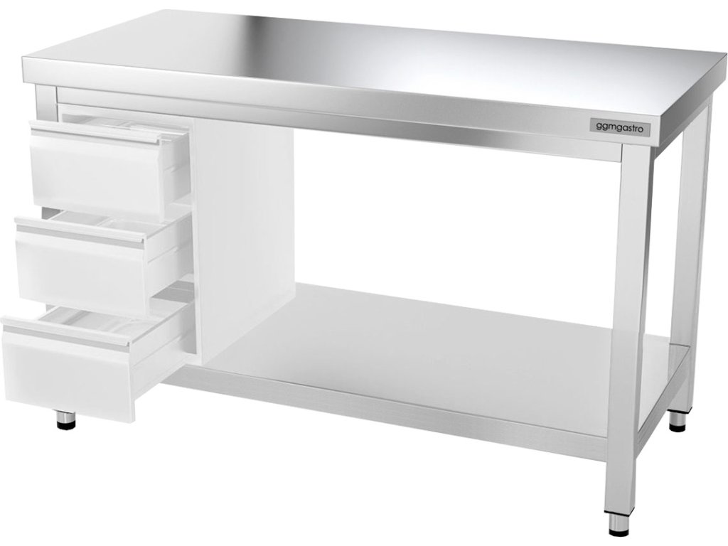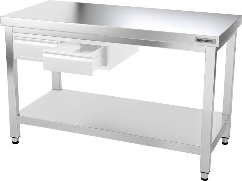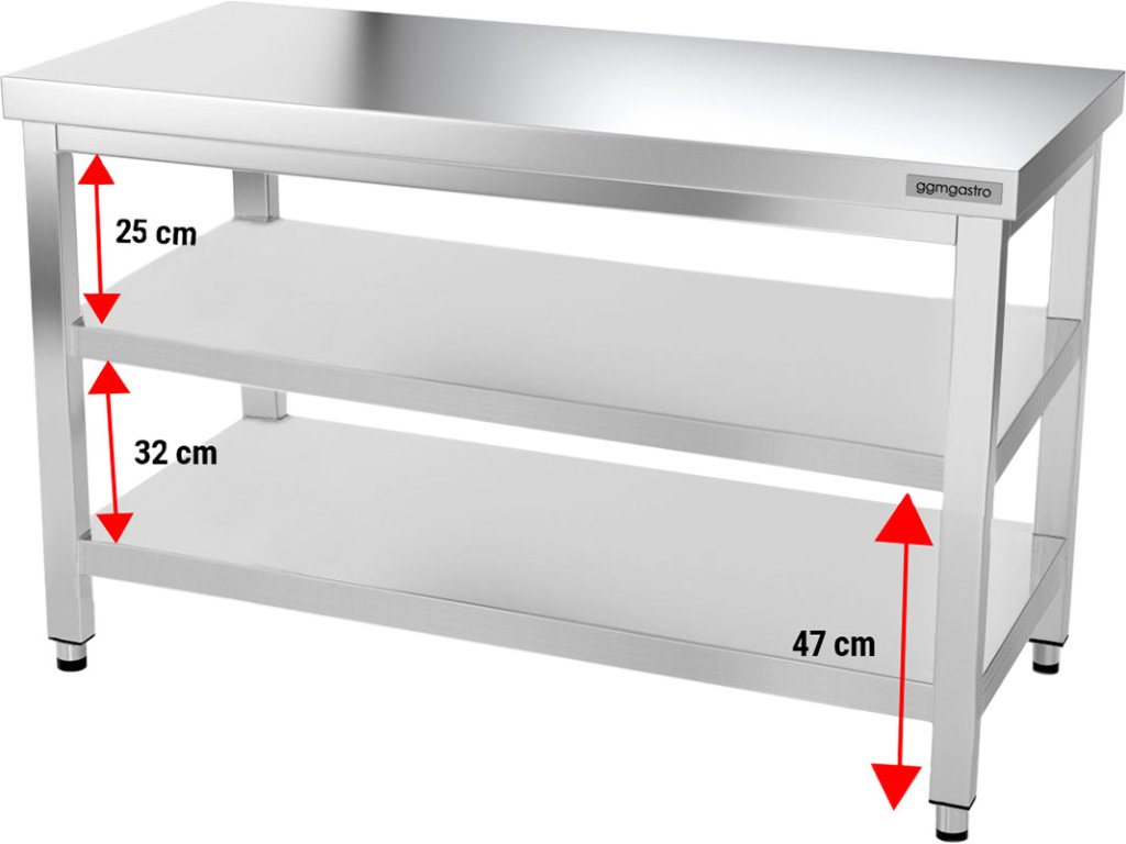 - Nerezový pracovní stůl PREMIUM se spodní policí bez zadního lemu