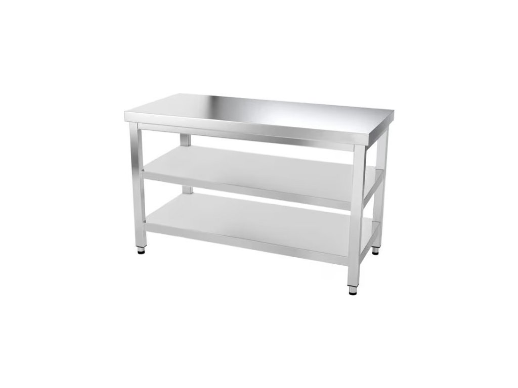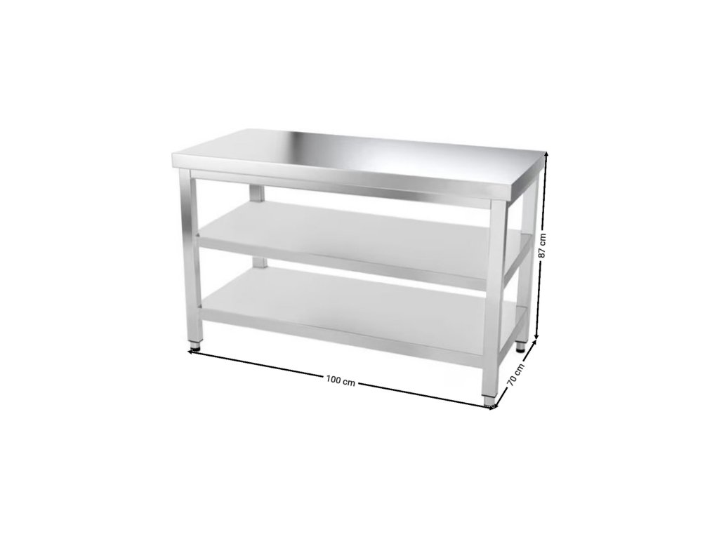 Nerezový pracovní stůl s dvěma policemi bez zadního lemu - 1000 x 700 x 870 mm