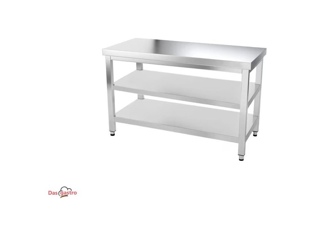Nerezový pracovní stůl PREMIUM se dvěma policemi bez zadního lemu 2,0 m