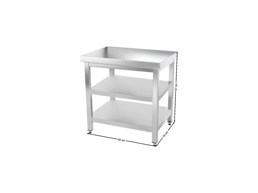 Nerezový pracovní stůl PREMIUM se dvěma policemi bez zadního lemu 0,6 m