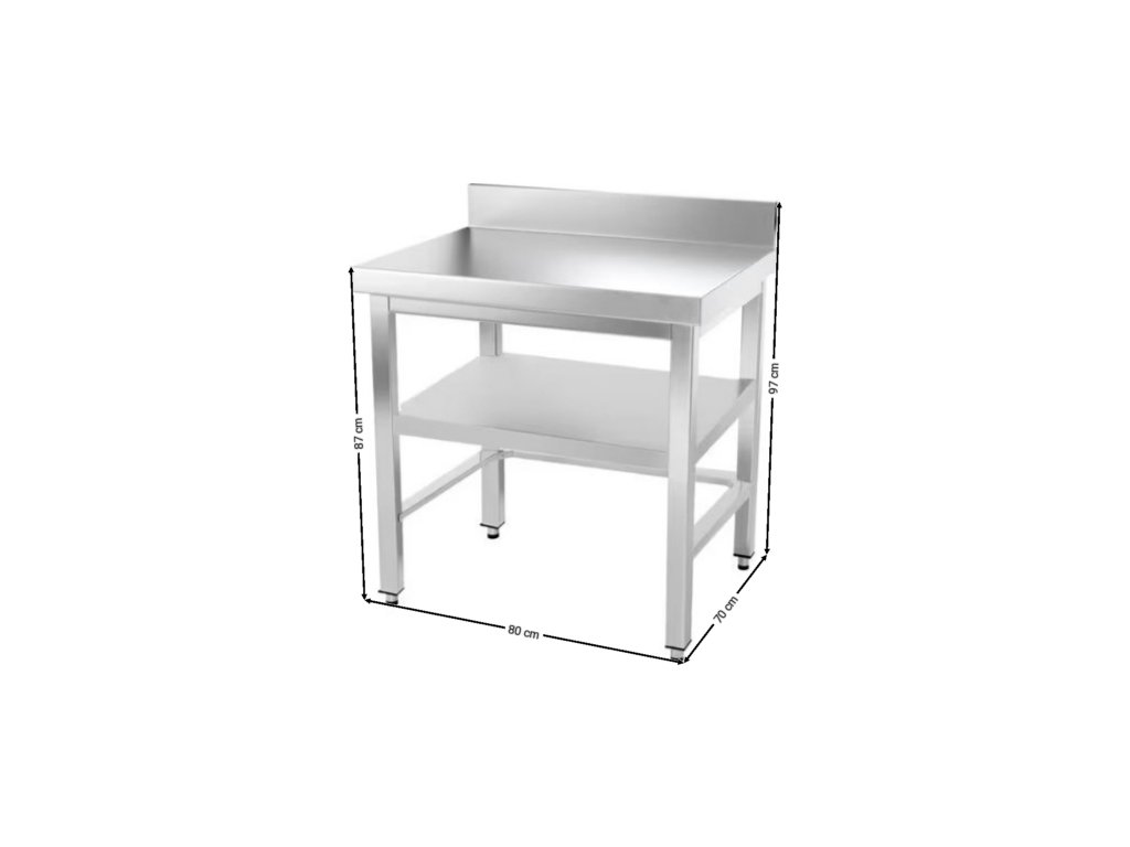 Nerezový pracovní stůl PREMIUM se spodní policí, zadním lemem a trnoží 0,8 m