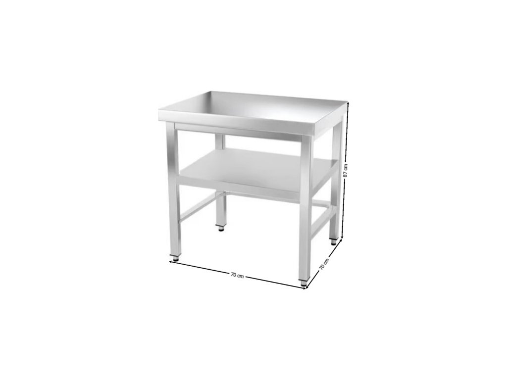 Nerezový pracovní stůl PREMIUM se spodní policí a trnoží, bez zadního lemu 0,7 m