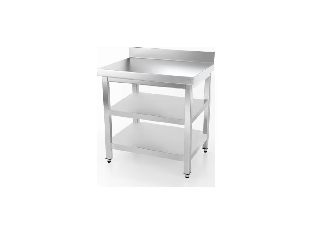 Stůl pracovní nerezový s dvěma policemi a zadním lemem - 1000 x 600 x 970 mm
